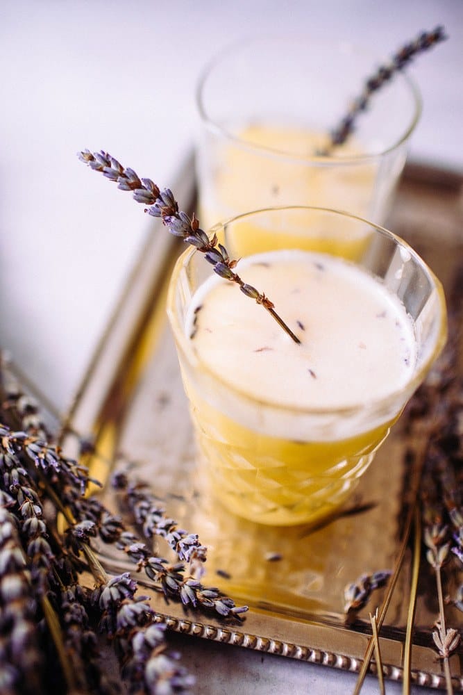 - Split into two glasses and top with a fresh or dried sprig of lavender for garnish.