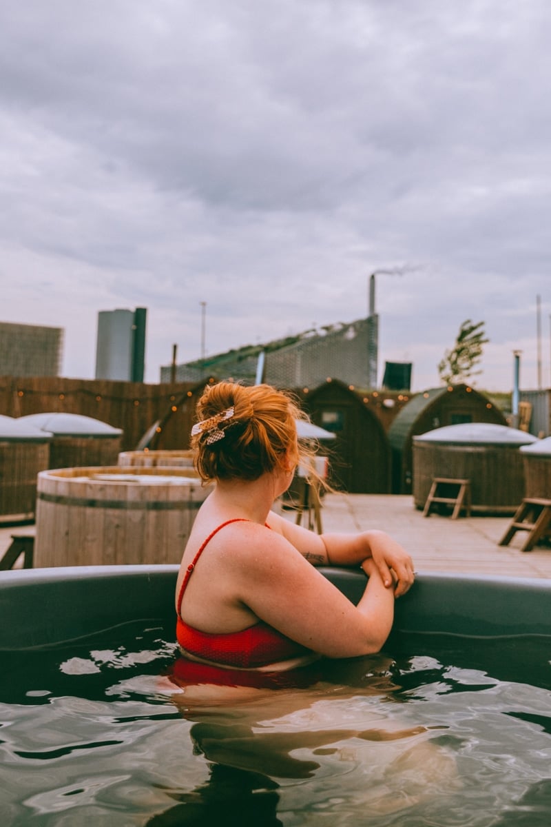 But sometimes a girl just wanted to unwind after a long day in a hot tub with a great view and an elderflower kombucha in hand. So, on a sunny spring evening, my husband and I trekked out to Refshaleøen, arguably the coolest neighborhood in all of Copenhagen, to visit CopenHot’s outdoor sauna and hot tubs.