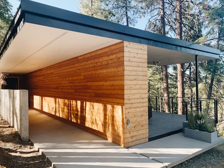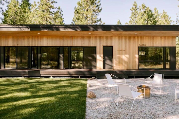 Just a 7-minute walk from town, this contemporary guest suite cabin is sleek and tucked among the trees, making it the perfect balance of in-town activities and nature retreat. There's a smart TV but you'll probably be finding yourself on the porch sipping local wine from Lake Chelan or perhaps inside by the fireplace in the reading nook.