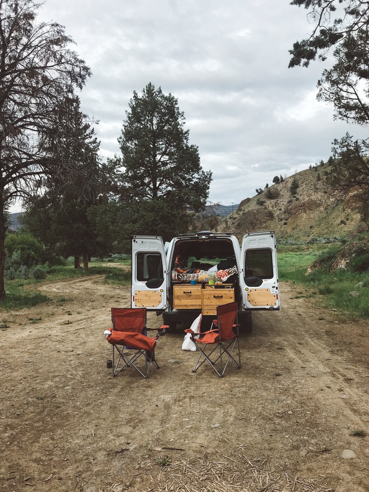 We loved this site because it was very large with trees that blocked the van from the view of the road. There’s a small river nearby and literally made a babbling broke noise. We didn’t make a campfire as our van has a kitchen, but there are a few established rings around if you are looking to build a fire. All in all, it was very peaceful!